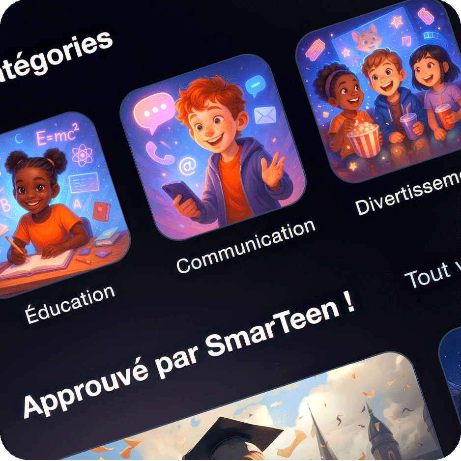 Le Jardin d’applications est l’espace du SmarTeen où l’enfant retrouve uniquement des applications sélectionnées pour son âge. Il remplace la logique d’un store classique, souvent trop vaste et mal adapté aux plus jeunes.