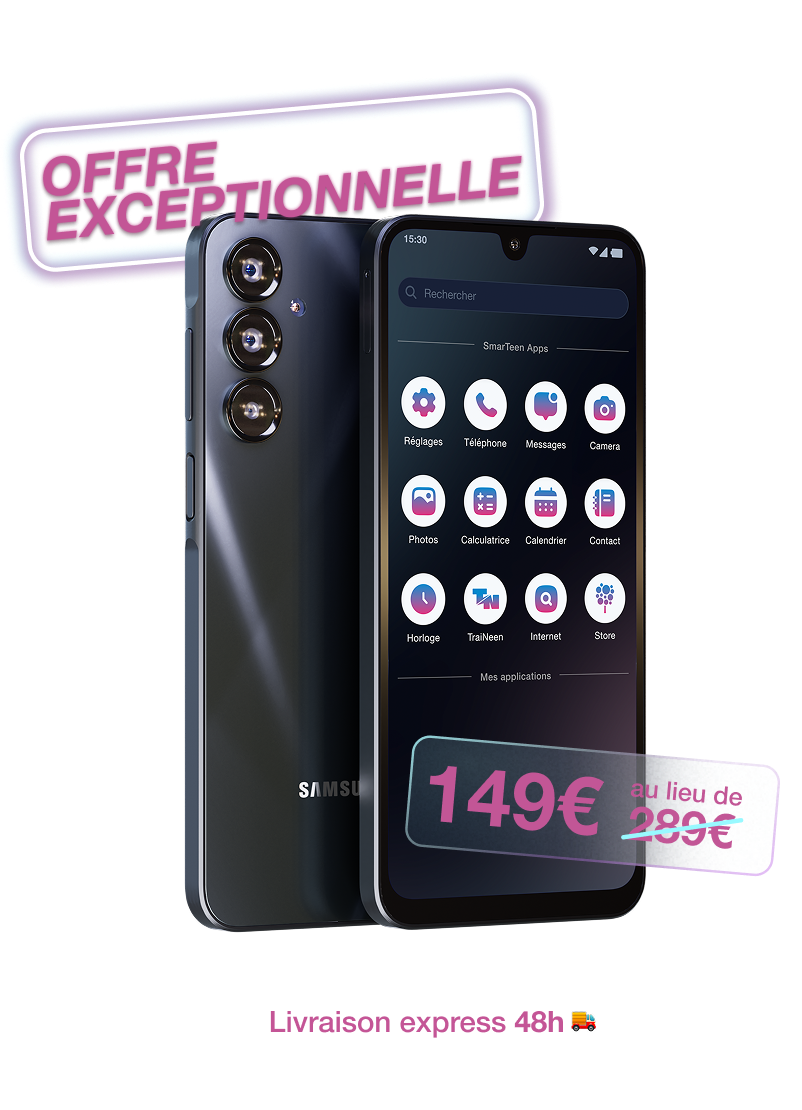 SmarTeen pense tout d’abord à vous, parents, avec un smartphone préconfiguré qui vous permet d’accompagner vos enfants sur la route de l’indépendance numérique.